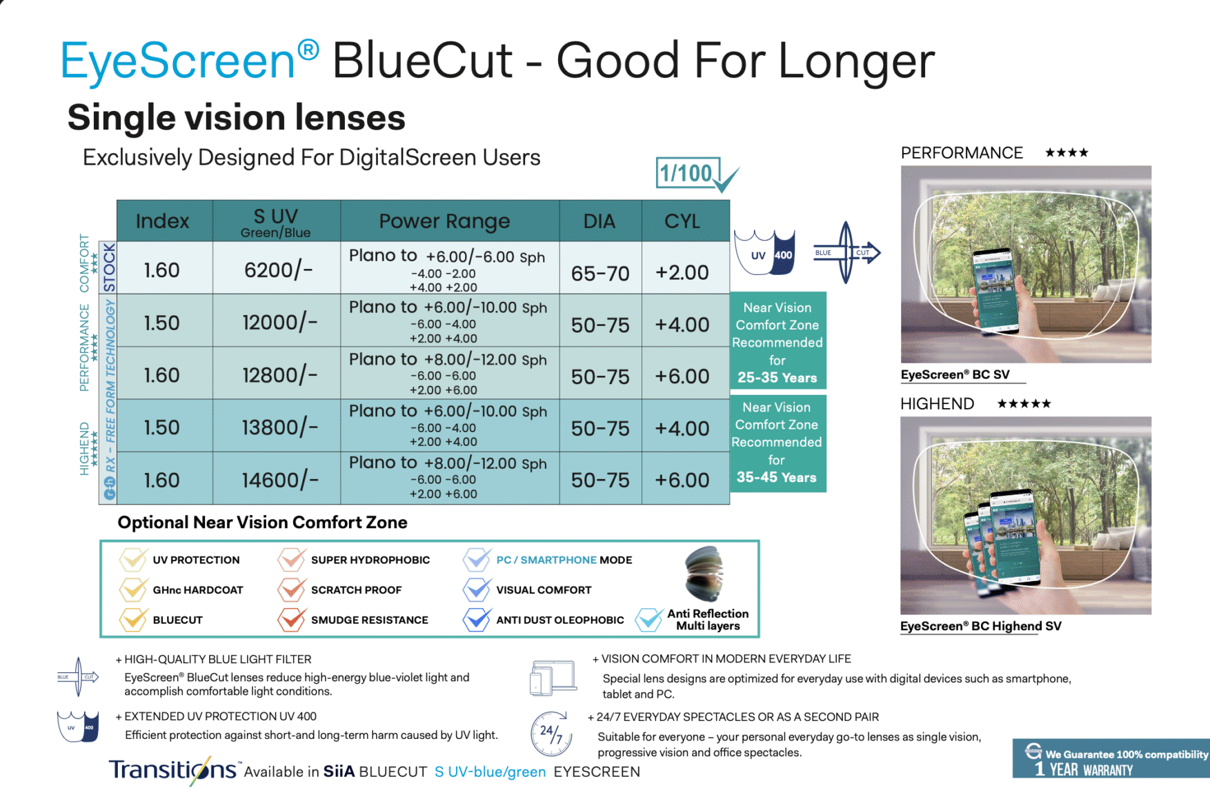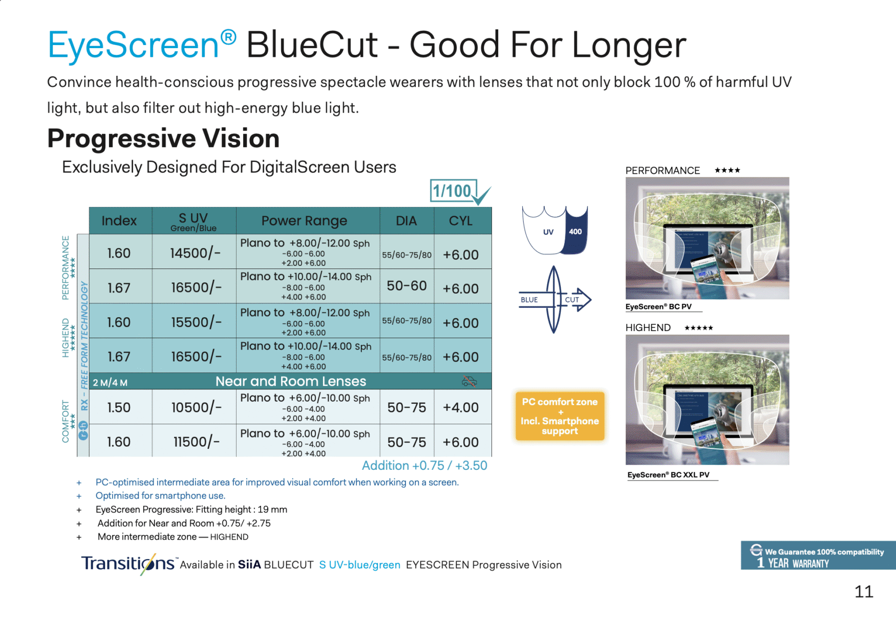 Convince health-conscious progressive spectacle wearers with lenses that not only block 100 % of harmful UV light, but also filter out high-energy blue light.