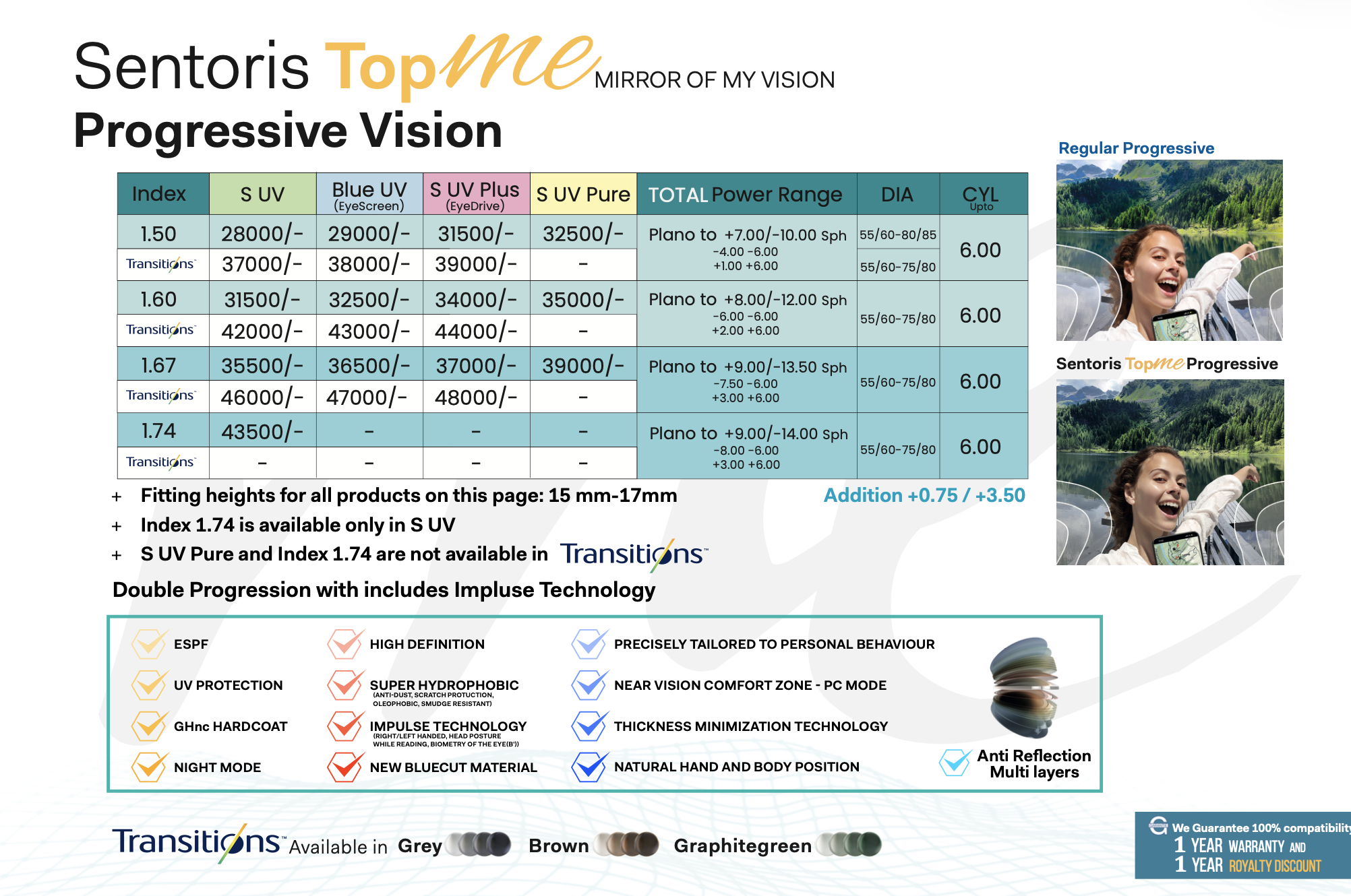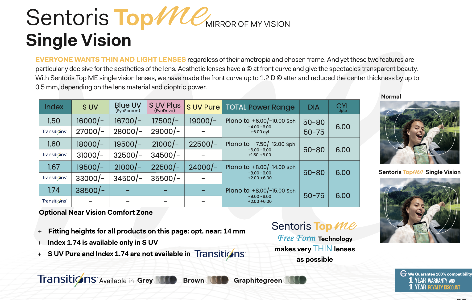 Individual data and additional functions are integrated in the optimization and re©ect today’s high vision requirements in the smallest detail. They turn Sentoris Top ME single vision lenses into a “mirror of my vision”.